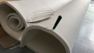 4000gr/m2 to 4200gr/m2 (one turn) monoturn Ironer Padding One Wrap Felts are the thick needled felts thickness about 18mm to 22mm, weight from 4000gr/m2 to 4200gr/m2, it is applied in one turn on top of the individual springs of heated chest ironers, our one turn ironer padding are suitable for a variety of commercial ironer machine brands. It is made of 100% polyester , meta-nomex/polyester , 100% nomex(aramid). |